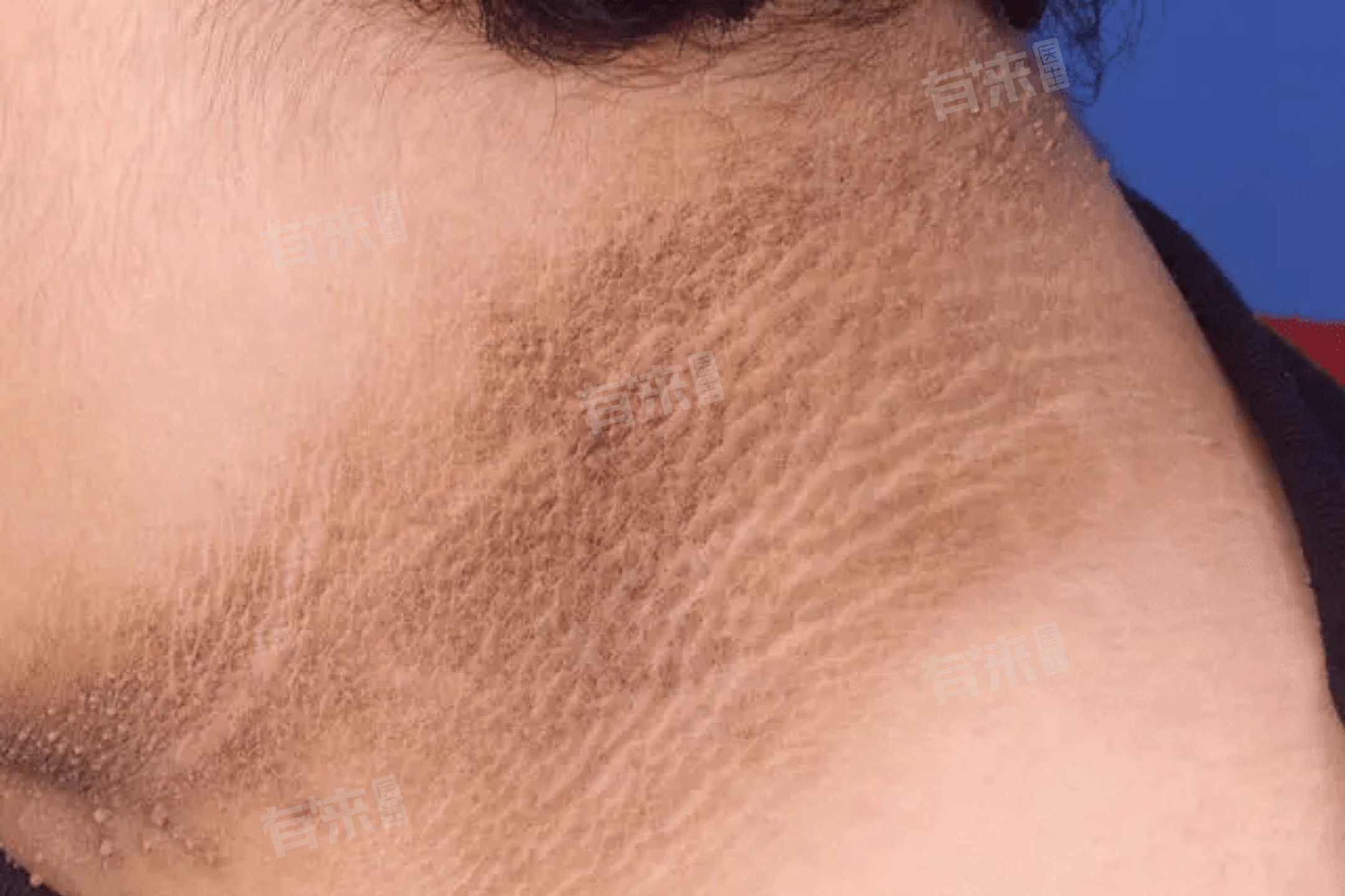 3、黑棘皮病:黑棘皮病是一种以皮肤颜色加深和乳头状或天鹅绒样增生为特征的皮肤病,可发生于脖子部位。该病分为真性良性黑棘皮病、肥胖性黑棘皮病等多种类型,其中肥胖性黑棘皮病较为常见,多与肥胖、胰岛素抵抗有关。患者脖子皮肤会出现天鹅绒样增厚,颜色逐渐加深,呈灰棕色或黑色,表面有许多细小乳头状突起,摸起来粗糙不平。早期发现并通过控制体重、改善代谢等方式干预,症状可得到缓解。