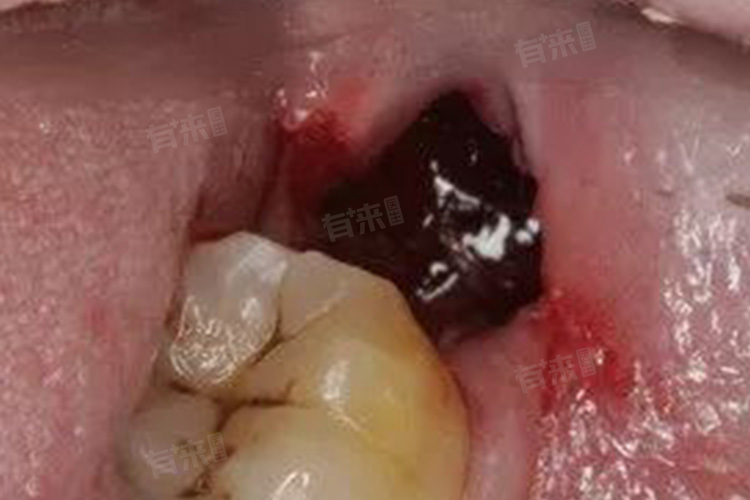 2、创口异常:拔牙创口内原本形成的血凝块脱落或溶解消失,牙槽骨壁暴露。创口周围牙龈红肿,触碰时疼痛加剧。正常情况下,拔牙创口会逐渐愈合,而干槽症患者的创口愈合缓慢,甚至长时间不愈合,严重影响患者的日常生活。