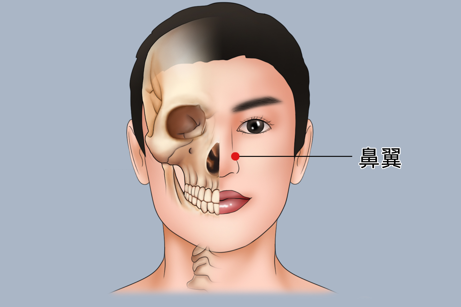 - 鼻翼紧贴在鼻尖的两侧,是外鼻突出部位最下方的两侧,呈弧形向外突出。鼻翼主要由大翼软骨、小翼软骨及皮肤与皮下组织等所构成。鼻翼的皮肤表面较厚,且含有丰富的汗腺与皮脂腺,因此也更容易发生痤疮和疖肿等皮肤疾病。