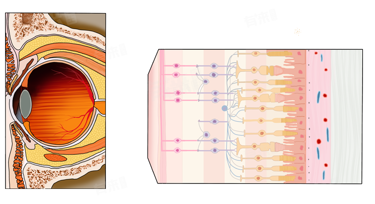 - 视网膜的最外层由色素上皮组成,这层组织不仅为视网膜提供营养支持,还帮助吸收多余的光线,防止反射干扰视力。紧邻其内的是感光细胞层,这里就是视杆细胞和视锥细胞所在的位置。再往内依次是双极细胞层和神经节细胞层,每一层都有特定的功能,共同协作完成视觉信号的处理与传递。