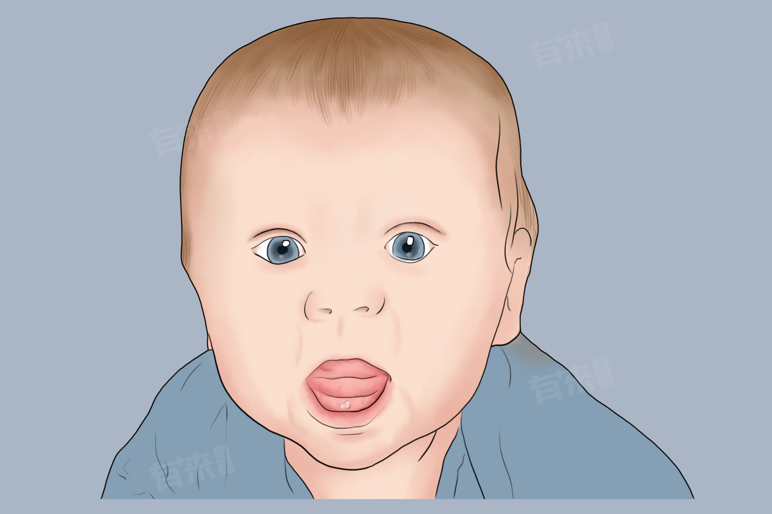 4、鹅口疮:由白色念珠菌感染引起,是一种接触传播的疾病。白色包块形似奶块,不易擦去,强行擦去后可见红色创面,宝宝可能会因疼痛而哭闹、拒食。在医生指导下使用抗真菌类药物。