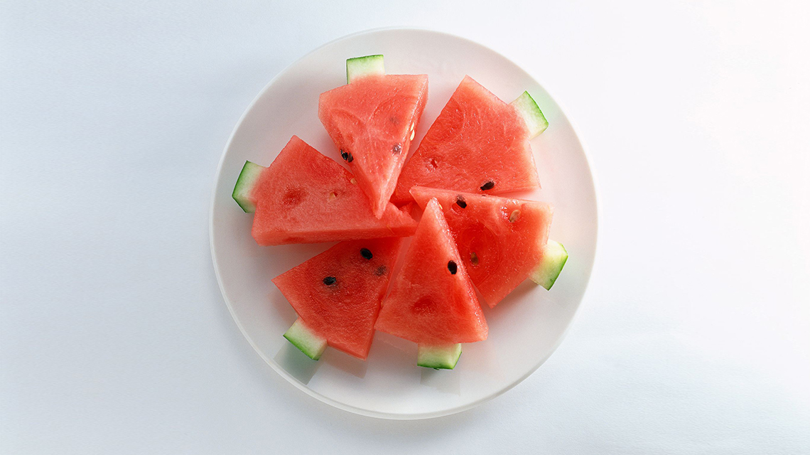 西瓜味甘性凉,属于凉性水果,且含有大量水分,是瓜果中汁液最多的,具有消热解毒、除烦止渴的作用,是夏季消暑的绝佳水果。在妊娠早期吃些西瓜,有助于除腻消烦,对止吐有很好的效果。