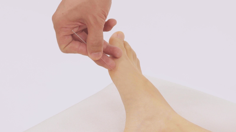 患者呈仰卧位,在第1跖趾关节后下方的赤白肉际处,我们就找到了太白穴。