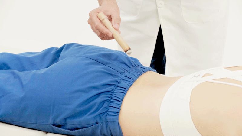 使用刮痧板与皮肤呈45°角对气海俞进行刮擦,以局部皮肤潮红为度,每次2-3分钟,刮痧可以辅助治疗腰痛、月经不调。