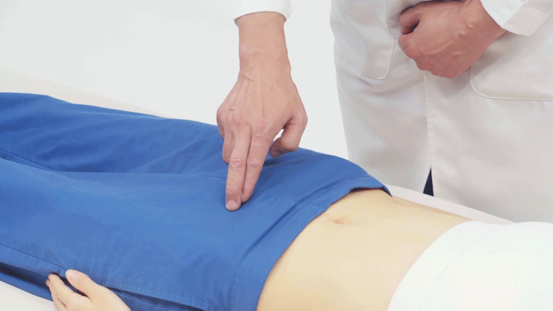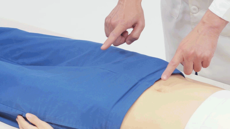 取穴的时候,患者取仰卧位,肚脐与耻骨联合的距离是5寸,我们把它五等分,在4寸的位置旁开2寸,这样我们就找到了归来穴,左右两边各有一个。