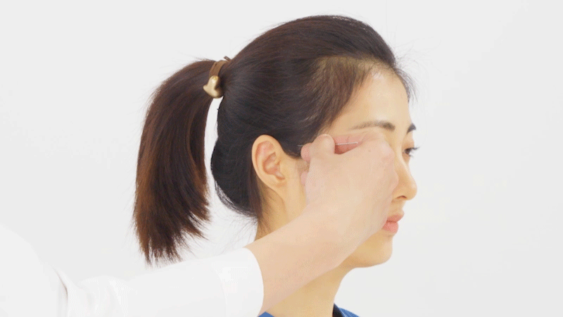 取穴时,患者取仰卧位或坐位,我们先找到耳前鬓发的后缘与耳尖水平线的交点处就是曲鬓穴了。