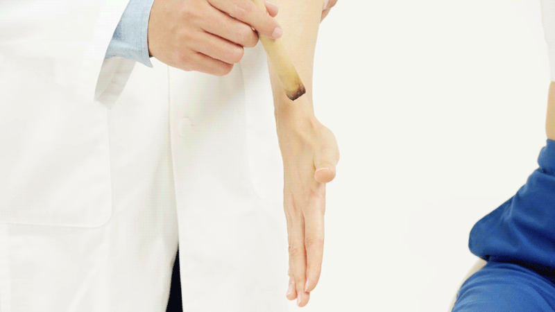 取穴时,患者取坐位,手掌伸直,大拇指向上翘起,此时拇指侧手腕位置有一凹陷,即为阳溪穴。