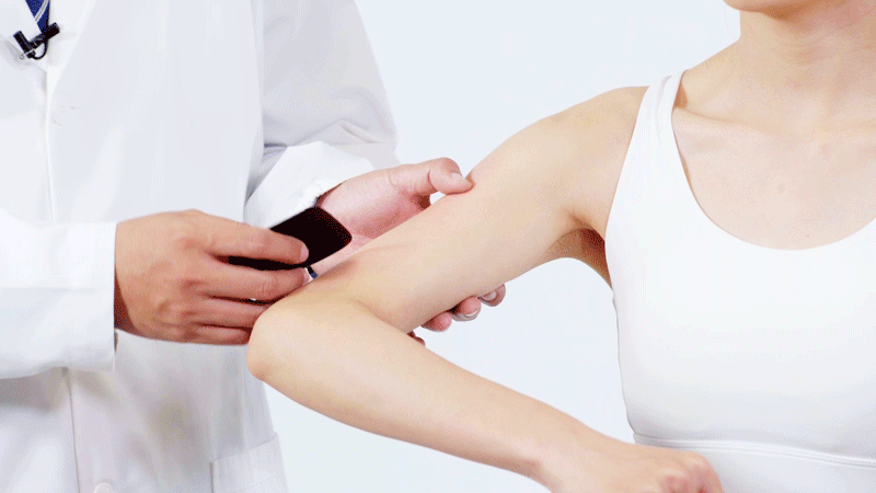 取穴时,患者取坐位,屈肘握拳,在三角肌前下缘内侧凹陷处,即为臂臑穴。