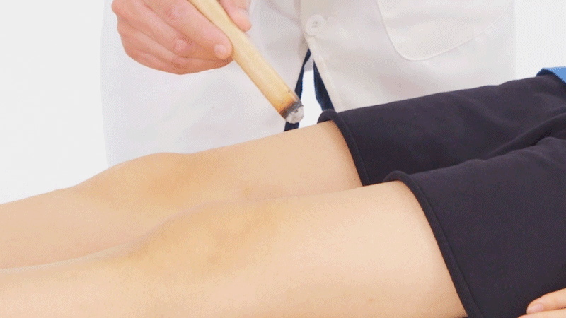 用艾条在距离皮肤3-5厘米处对梁丘穴进行悬灸,灸治5-10分钟,有助于缓解膝关节疼痛以及胃肠炎导致的腹泻等。
