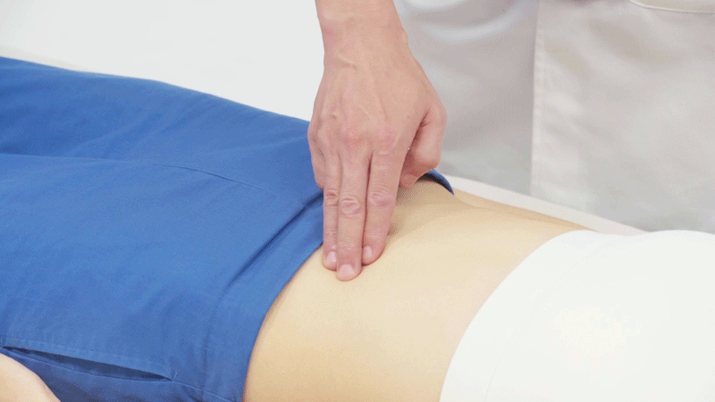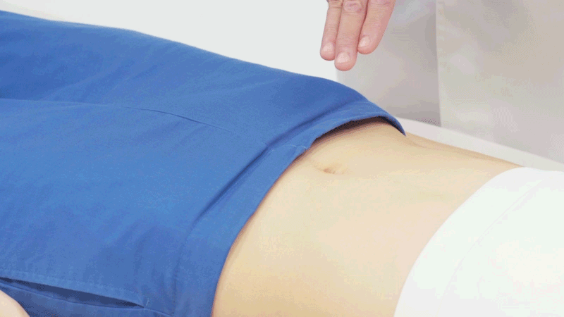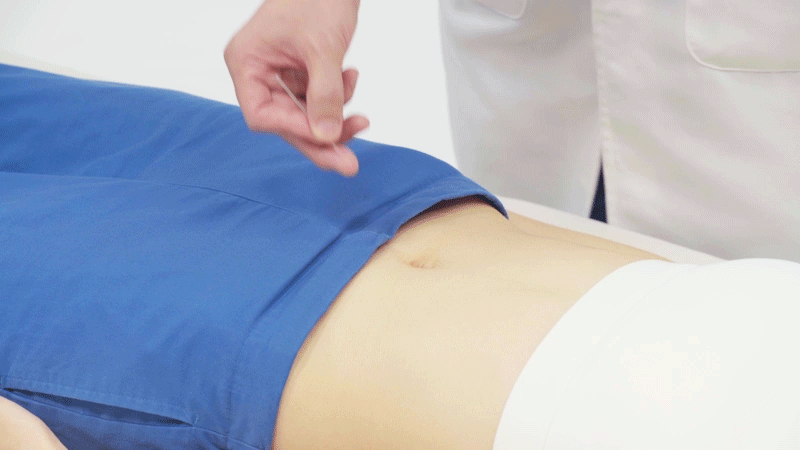 取穴时,患者呈仰卧位,患者自身三指的宽度为2寸,这样即可在肚脐旁开2寸处找到天枢穴,左右两边各有一个。