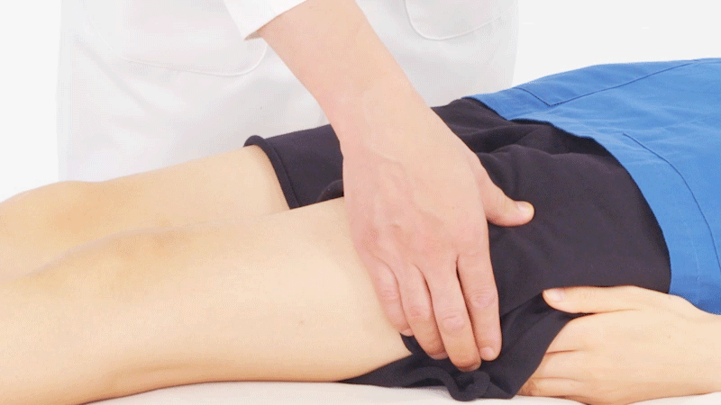 取穴时,患者呈仰卧位,抬腿屈膝,在髂前上棘与髌底外侧缘之间的连线上,横平会阴处有一凹陷,此凹陷中即为髀关穴。