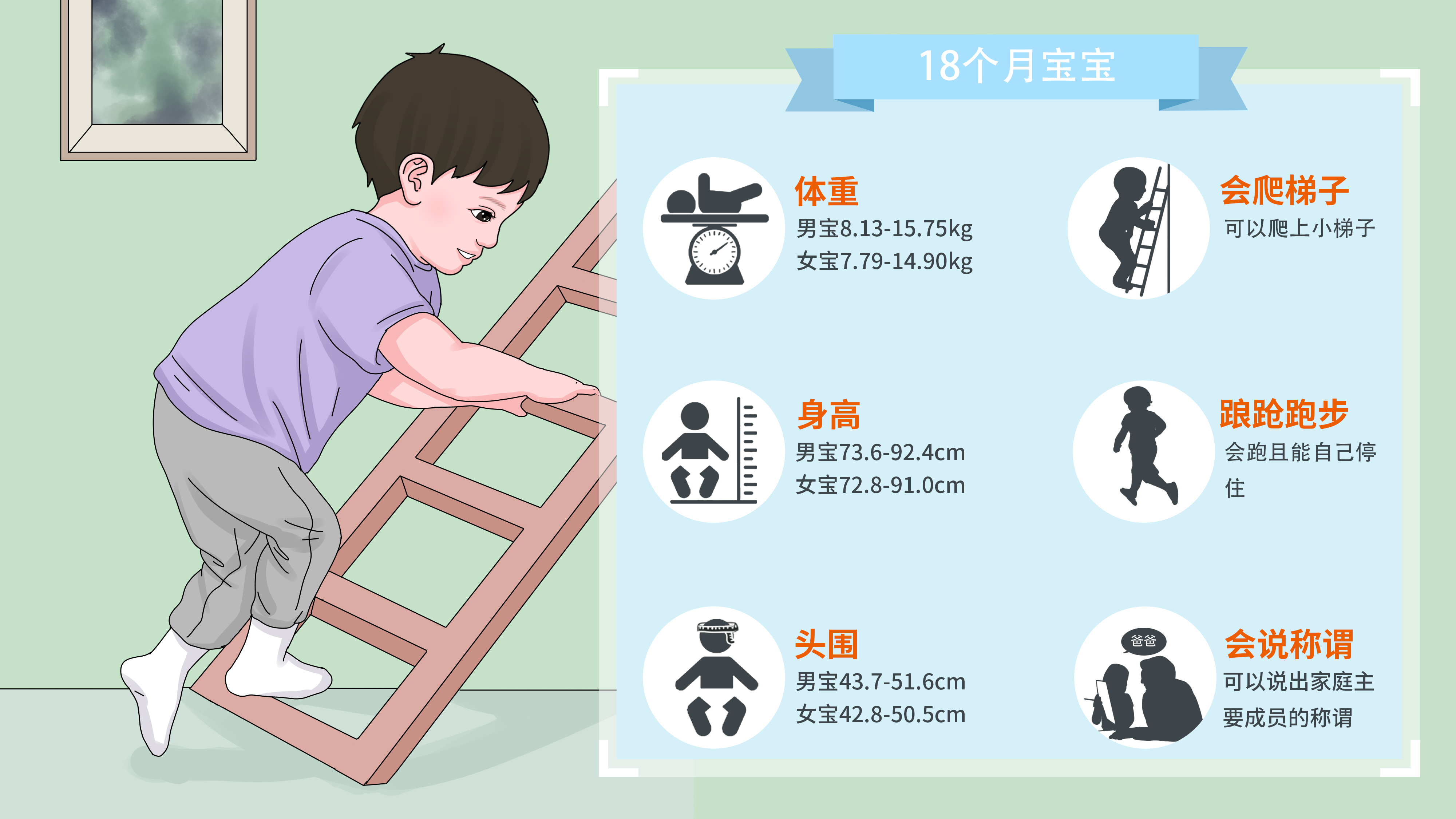 到18个月时,大多数宝宝已经走得很好,行走速度加快,还能拉着玩具车走。开始尝试踉跄跑步,会跑且能自己停住,但还不熟练,可以自己爬上小梯子。能够很熟练地扔球,不会因为使劲扔球失去平衡而摔倒,能踢动静止的皮球。