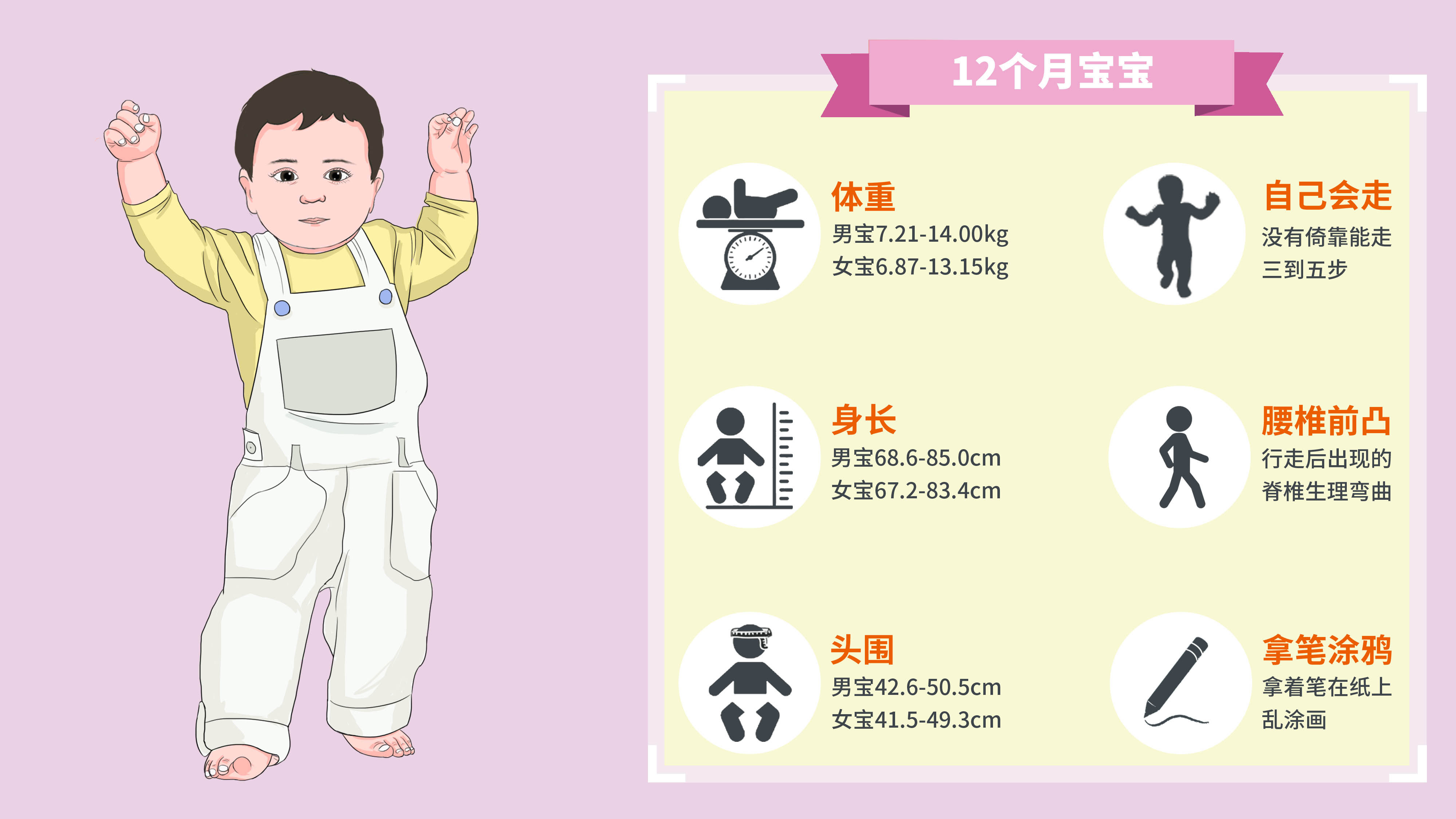 评估宝宝动作发育程度有无异常,此时宝宝能自己站起来,能扶着东西行走,能手足并用爬台阶,宝宝能用蜡笔在纸上戳出点或道道。