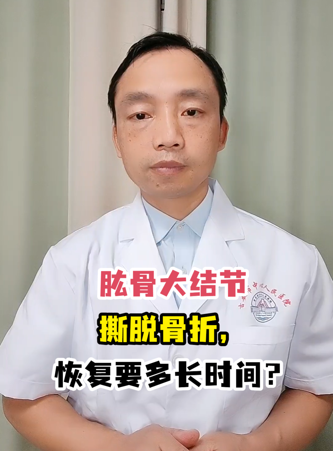 肱骨大结节骨折,若骨折线波及结节间沟,日后可因结节间沟不平滑致使二头肌腱滑动受阻而造成慢性肩痛。肱骨大结节骨折易合并肩部软组织损伤,容易引起肩关节囊周围肌肉、韧带之间相互粘连,造成关节活动障碍。