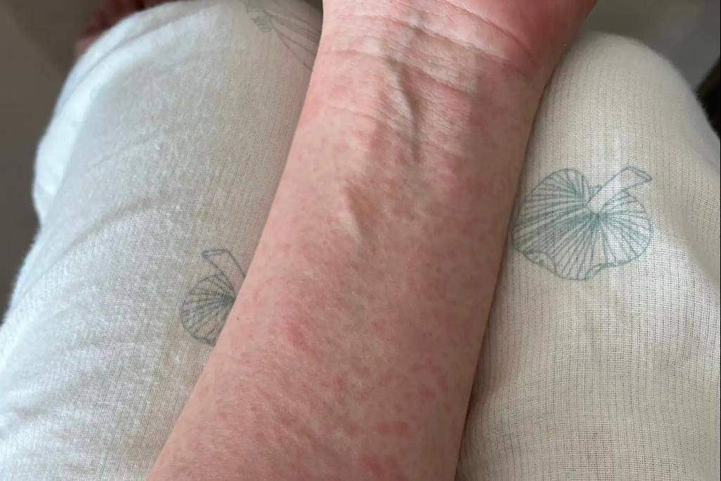 多数患者的皮肤损害发生于病程第2-5天,躯干、四肢为常见好发区域,手掌、足底黏膜移行部位亦易受累,部分病例可波及面部,呈现泛发性分布趋势,无明显部位特异性。