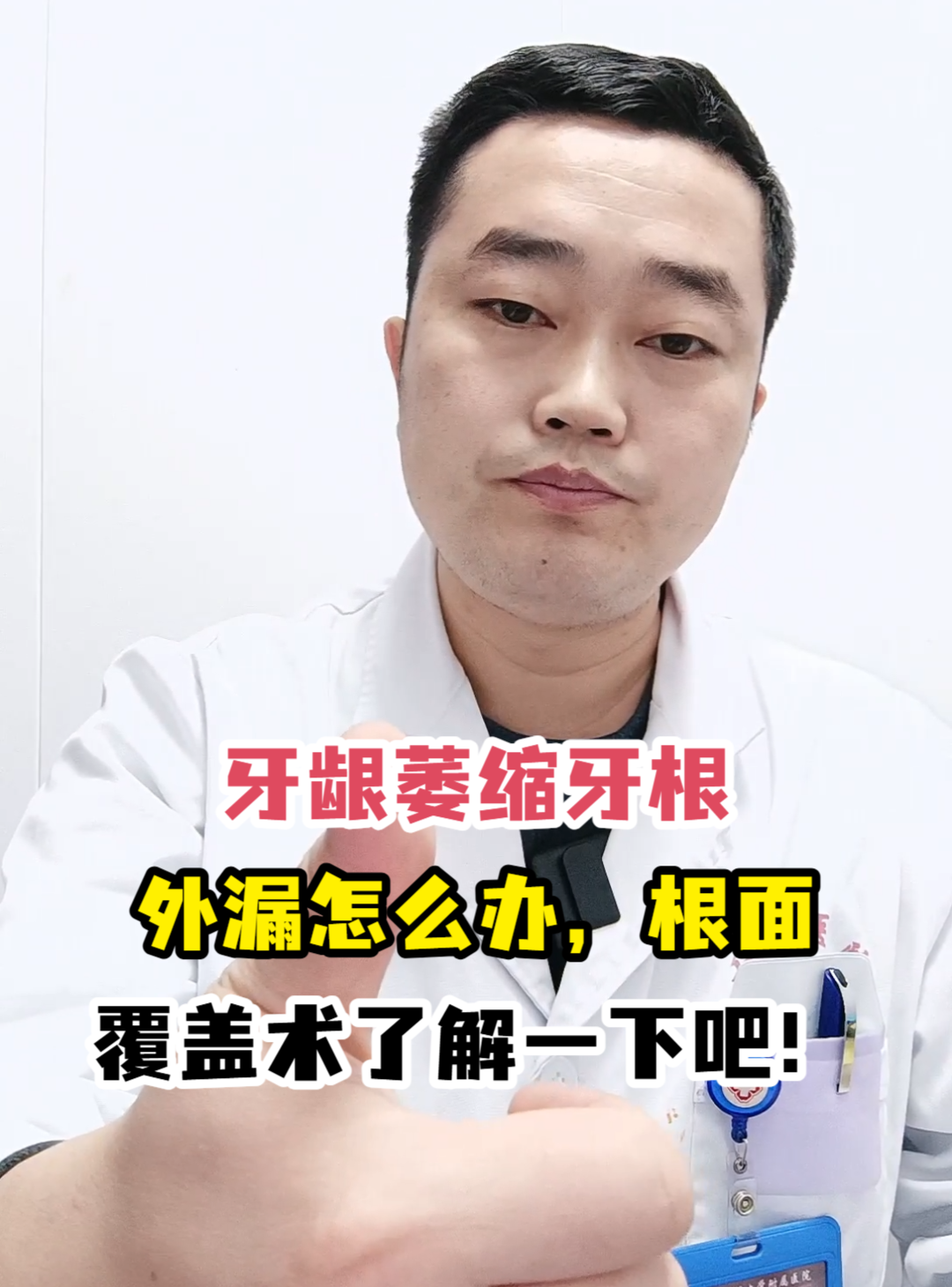 牙龈萎缩可表现为患者部分牙根有轻微显露,牙体略有增长,可能与刷牙不当、咬合力过大等有关,需遵医嘱治疗。