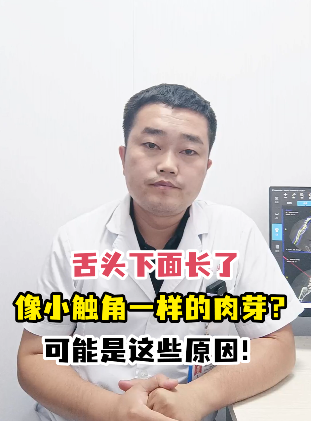 舌下肉阜:在舌腹正中可见舌系带,系带两旁有呈乳头状突起的肉芽,舌下肉阜为正常的解剖结构,无不适症状。