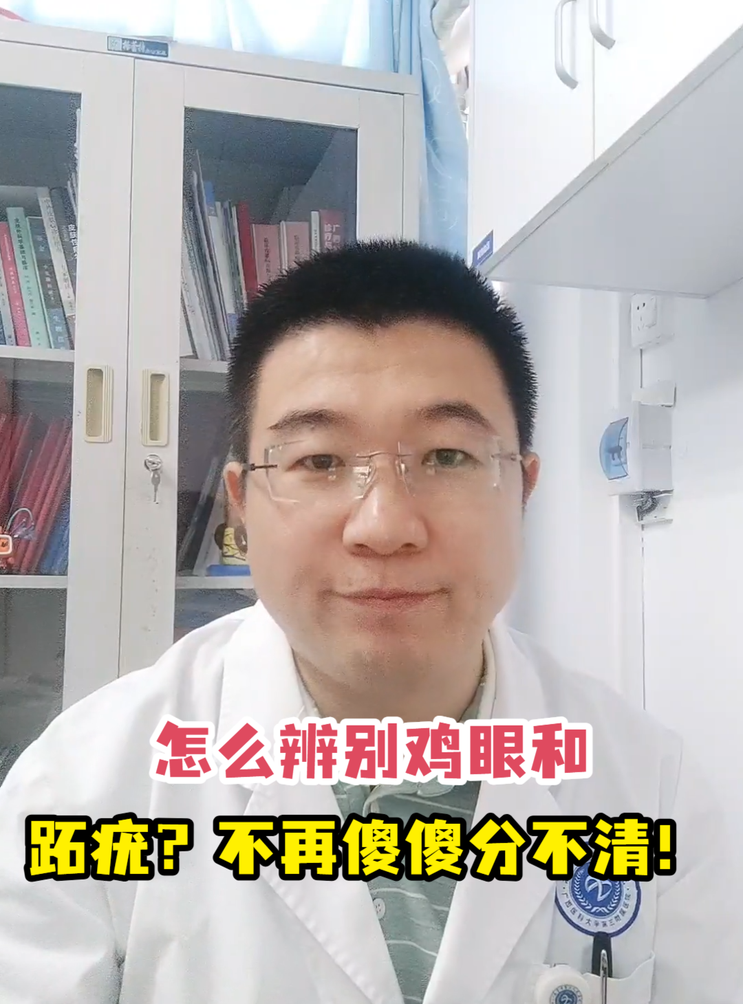 跖疣是发生于足底或趾跖面的寻常疣,多由人乳头瘤病毒-1(HPV-1型)感染导致,HPV-2型、HPV-4型也可引起跖疣的发生。鸡眼是足跖或足趾部皮肤因长期挤压和摩擦而导致局部形成的圆锥形角质增生病变。