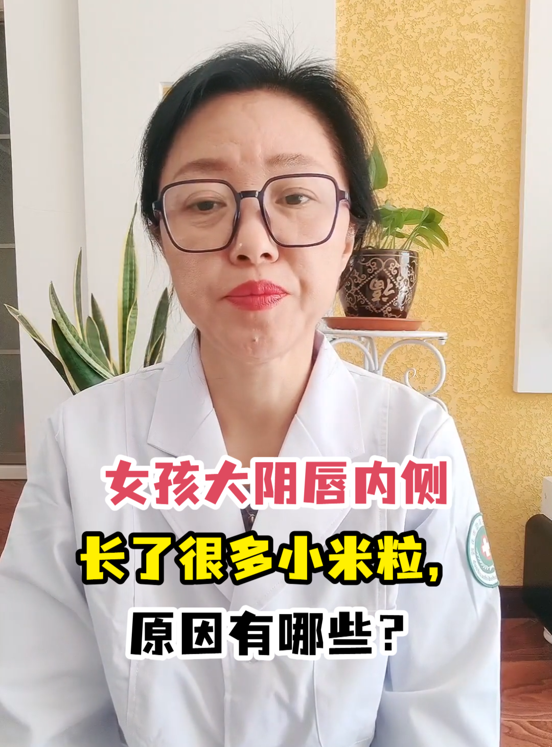 女性阴唇内侧长了很多小颗粒,可能是假性湿疣、生殖器疱疹等因素导致,局部出现丘疹或小水疱,一般无自觉症状,需遵医嘱治疗。