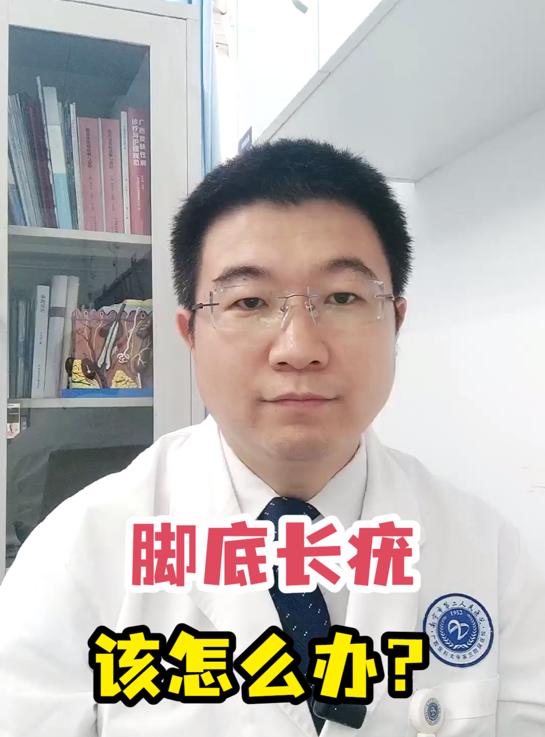 疣患者脚底可见有散在分布或互相融合的灰白色疙瘩,触之质感粗糙发硬。由人乳头瘤病毒感染导致,需遵医嘱治疗。
