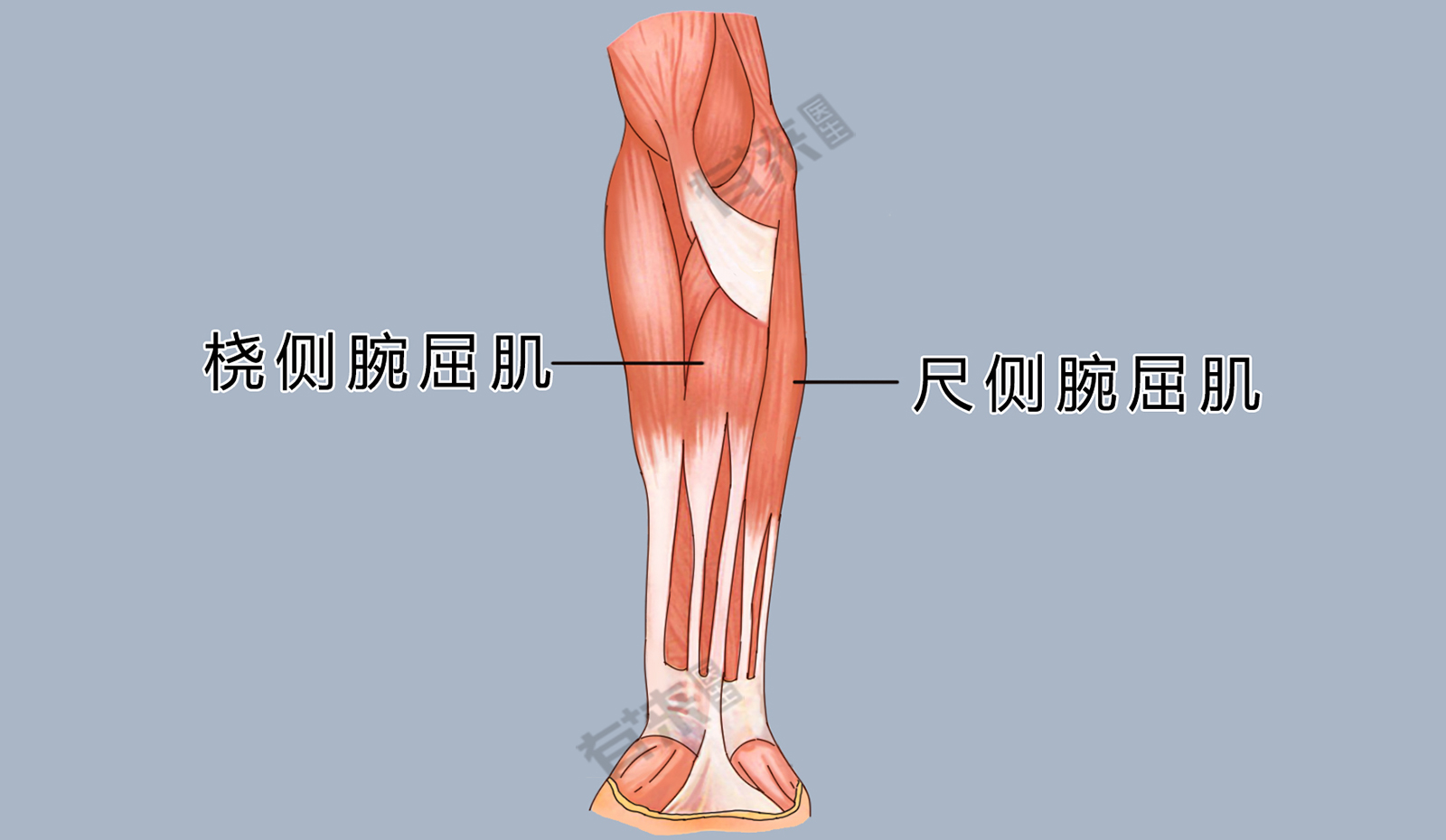 桡侧腕屈肌主要作用为屈和外展腕关节、屈肘关节