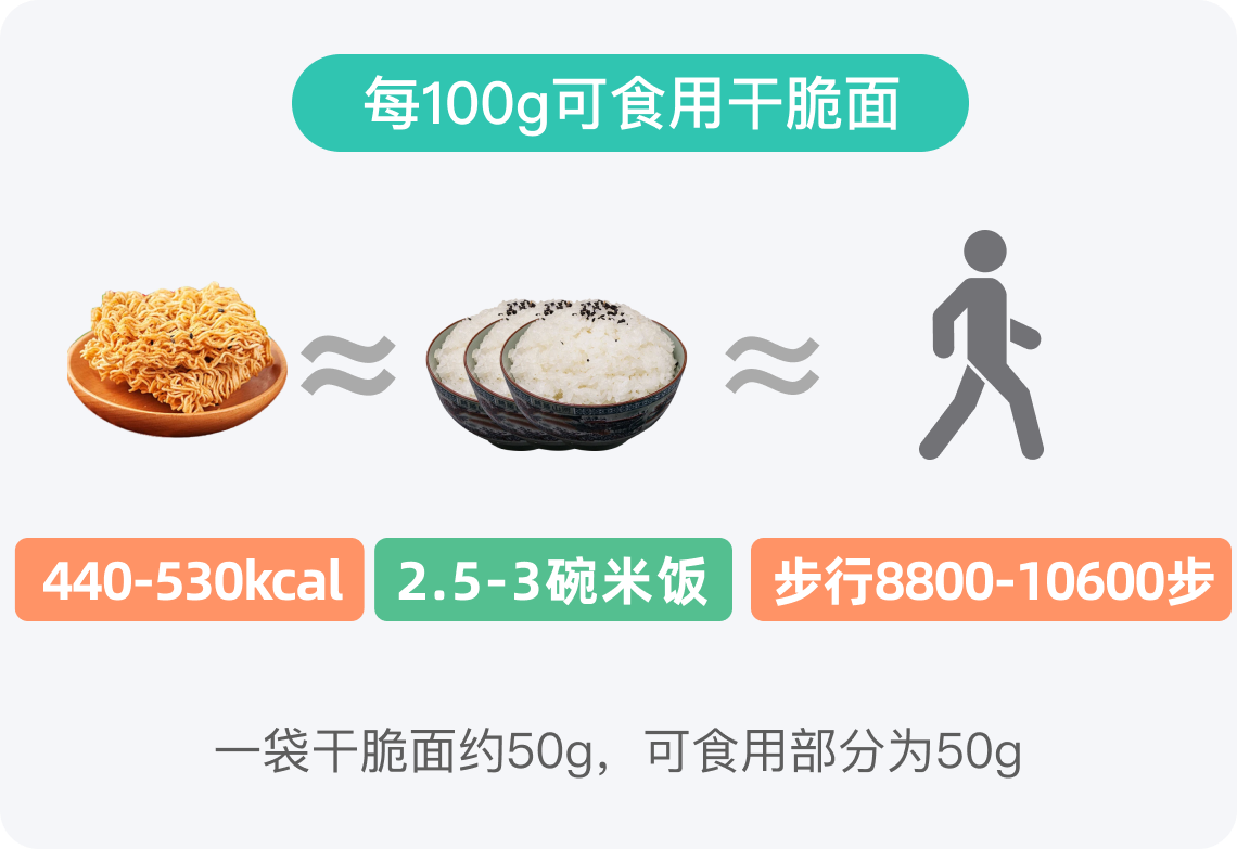 鉴于干脆面热量高,食用时应严格控制量。如前面所述,每次不超过50g,避免过量摄入热量。