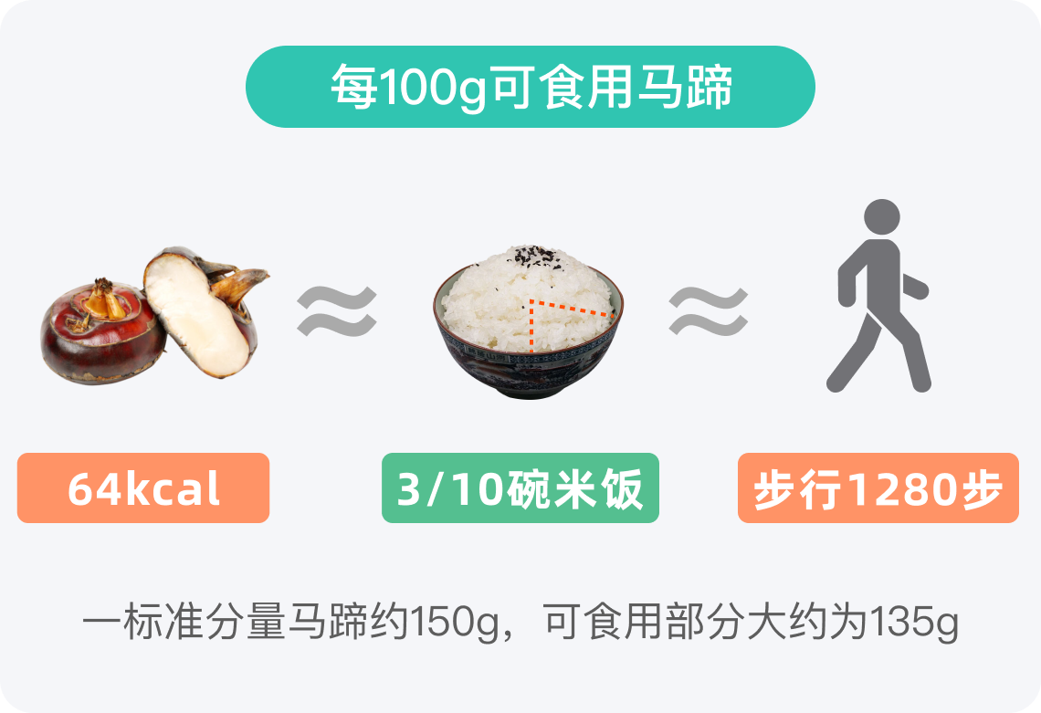 一标准分量马蹄约150g,可食用部分大约为135g。为了更直观地理解这一热量水平,可以将其与米饭进行对比。通常每100g米饭的热量约为116kcal,一碗米饭约150g。一标准分量马蹄的热量,约为1/2碗米饭的热量。这意味着,在同等重量下,马蹄的热量更低,更适合减肥或控制热量摄入的人群。
