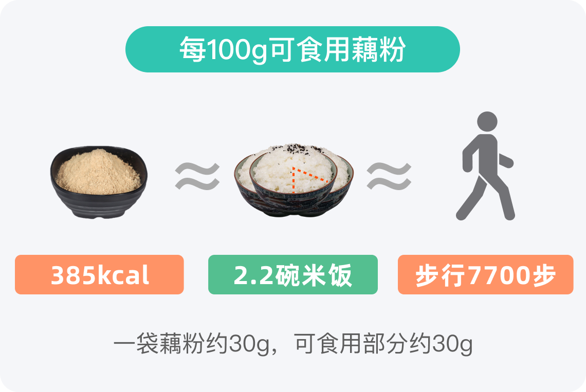 常见的一袋藕粉重量约为30g,其热量为116kcal,约等于2/3碗米饭的热量。这个热量水平在普通成年人一餐中所占比例较低,但仍需控制摄入量。