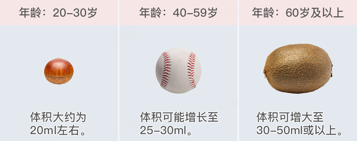 进入中年(约40-59岁)后,前列腺会逐渐出现一些生理性变化。其大小通常会有一定程度的增长,底部横径可能会增加到4.5cm左右,纵径约3.5cm,前后径约2.5cm,体积可能增长至25-30ml。