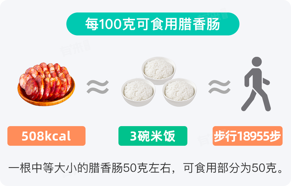 一根腊香肠的可食用部分克重因品牌、制作工艺和大小而异,但一般而言,一根中等大小的腊香肠可食用部分大约在50至150g之间。以每100g腊香肠热量约508kcal为例,一根中等大小的腊香肠热量大约在254-762kcal之间。这一热量值相当于1.7-4.3碗半米饭的热量,因此,腊香肠属于高热量食物,适量食用非常重要。