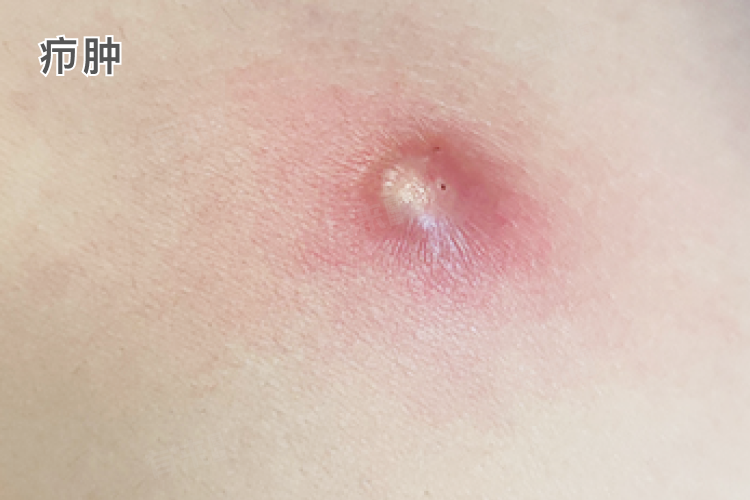 4、疖肿:初起为毛囊性炎性丘疹,基底浸润明显,以后炎症向周围扩展,形成坚硬结节,伴有红肿热痛。数日后结节中央变软,出现黄白色脓栓,脓栓脱落、破溃后排出脓液,炎症逐渐消退而愈合。疖肿通常比毛囊炎的炎症范围更广、更深,直径可达1-5厘米,可单发或多发,好发于头面部、颈部、臀部及背部等。