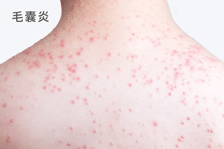 3、毛囊炎:表现为以毛囊为中心的炎性丘疹,初期为红色丘疹,逐渐发展可变成脓疱,周围有红晕,脓疱破溃后可排出少量脓血,继而结痂愈合。丘疹大小一般在2-5毫米,常单个或数个散在分布于头皮、面部、颈部、胸背部、臀部及四肢等多毛部位。