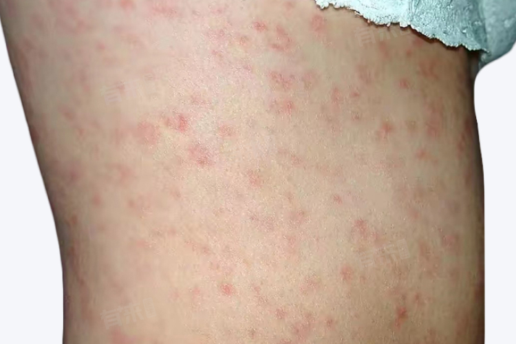 4、皮疹:皮疹呈暗红色或紫红色,直径约为2mm,主要分布在颈部、背部以及上胸部。皮疹间皮肤正常,且皮疹没有脱屑和疼痛症状,持续1-3周后就可自行消退。