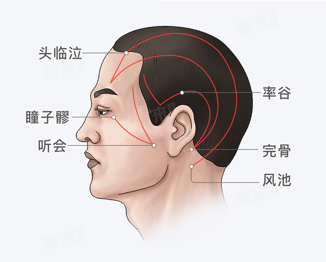 - 功效:当胆经气血调和时,人情绪稳定、果敢决断,在生理上胆经能促进头部两侧的气血循环,对缓解耳鸣、偏头痛、目赤肿痛等症状有帮助。