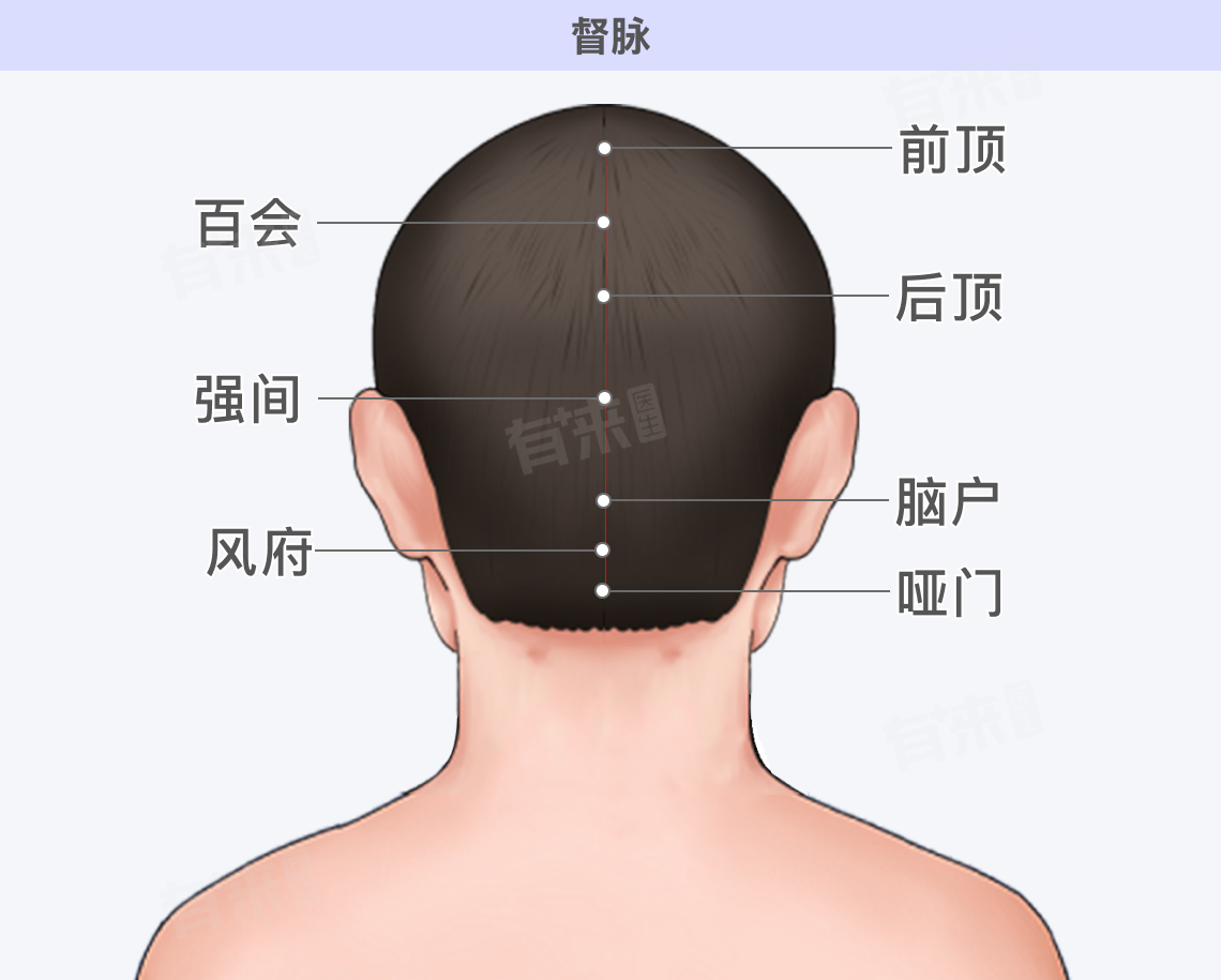 - 功效:能调节全身阳经气血,阳气充足则人体精神饱满、活力充沛,在头部督脉与脑的联系密切,对维持大脑的正常功能、保持清醒的神志具有关键意义。