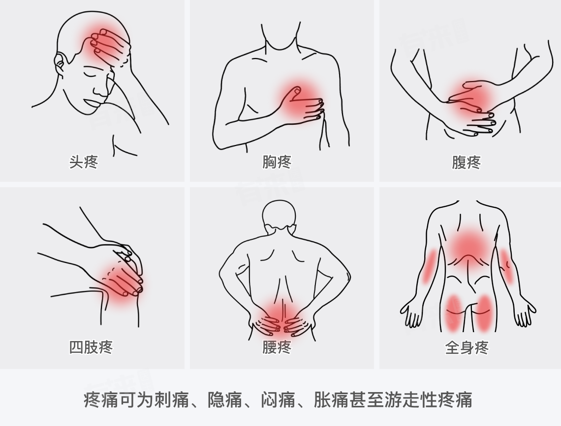 植物神经紊乱可导致全身多个系统受累,患者有时可出现疼痛症状,可表现为头疼、胸疼、腹疼、四肢疼、腰疼或者全身疼,可伴有头晕、胸闷、心慌、食欲不振等症状。