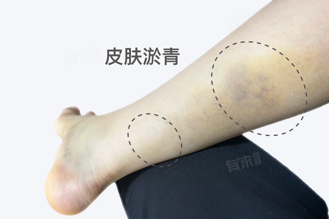 小腿肌肉拉伤后,由于肌肉中的血管受到损伤,可能引起皮下慢性出血,导致小腿部位出现淤青的症状。