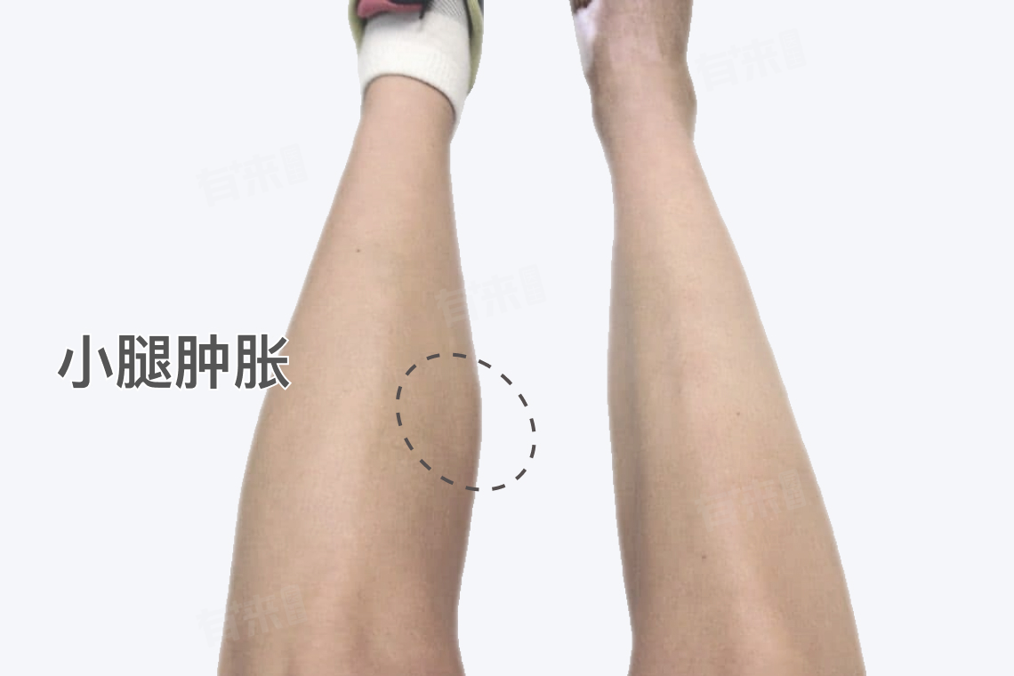拉伤后,小腿肌肉周围的血管可能会破裂,导致血液和组织液渗出,形成肿胀。