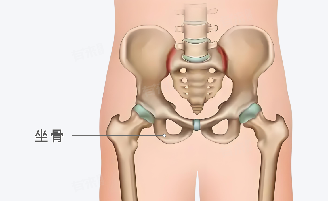 坐骨由坐骨体和坐骨支两部分组成,坐骨体构成髋臼的后下部,较为厚实;坐骨支从坐骨体向后下延伸,与耻骨下支结合。坐骨结节是坐骨的一个重要部分,上面覆盖着厚厚的软组织,如脂肪、筋膜和肌肉等,起到缓冲压力的作用。