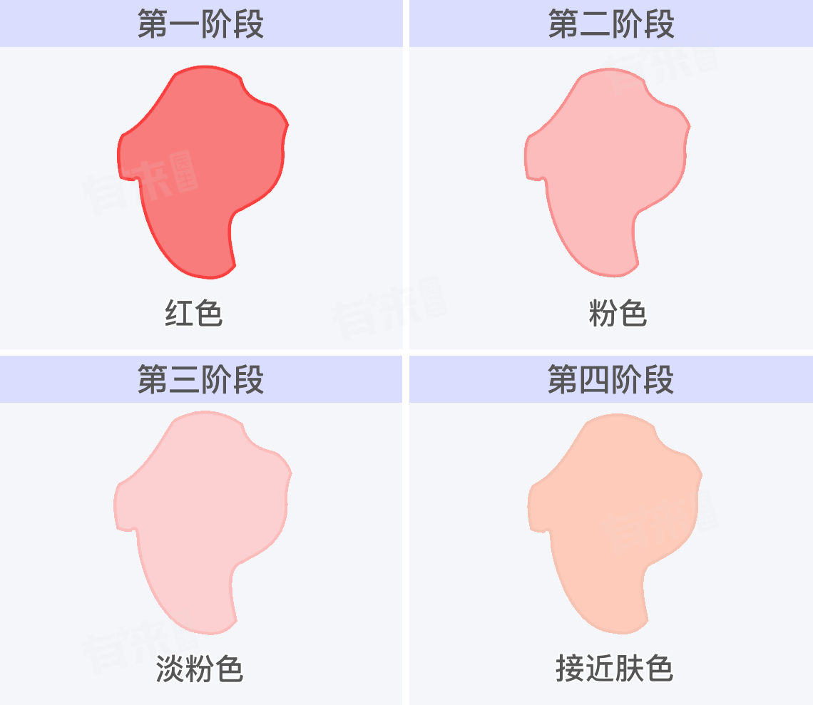当表皮完全再生瘢痕逐渐成熟时,伤口的颜色会越来越接近正常肤色,伤口愈合良好,没有形成明显的瘢痕增生,如果伤口最终颜色与周围皮肤几乎无异,说明愈合过程顺利。