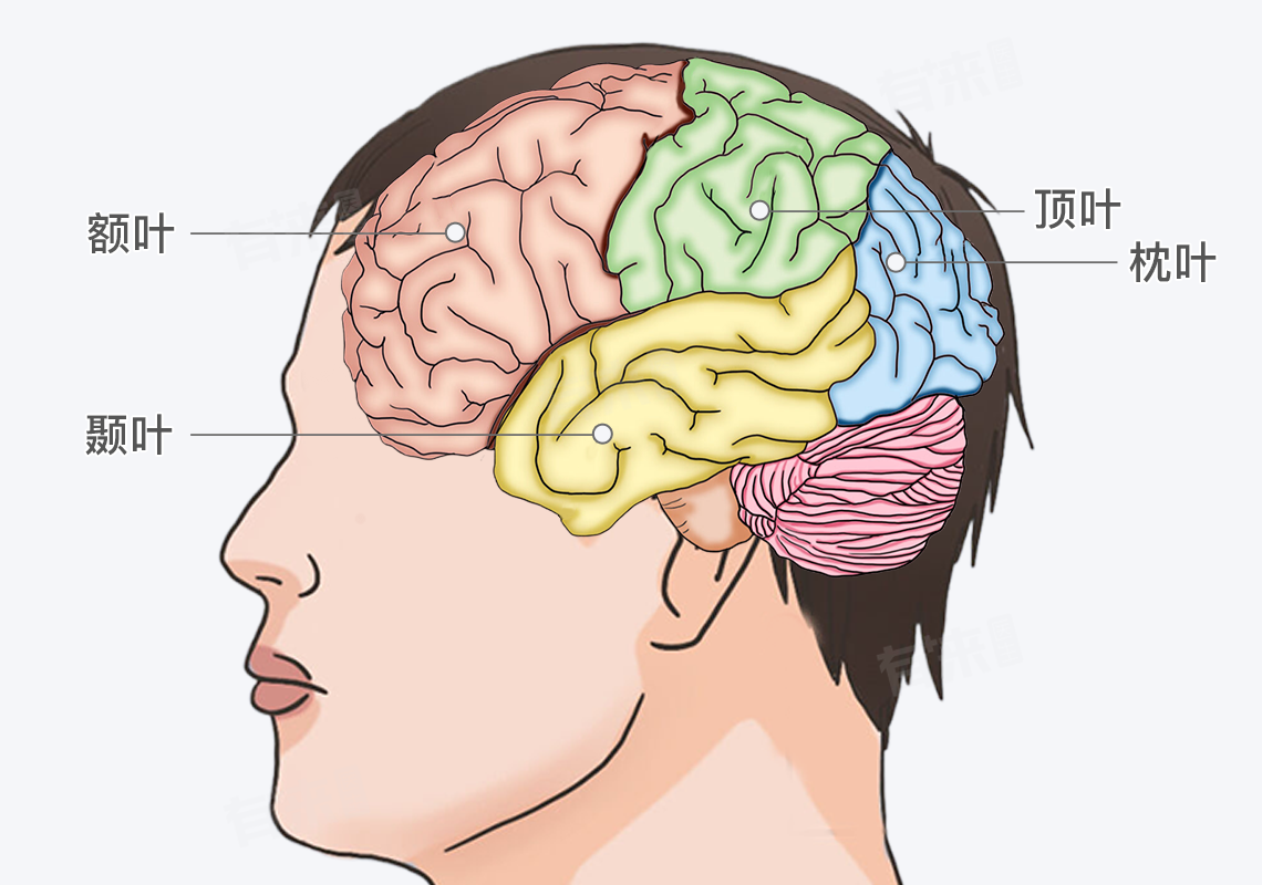 - 额叶:位于大脑前部,与运动控制、语言表达、决策制定、情绪调节及高级认知功能紧密相关。