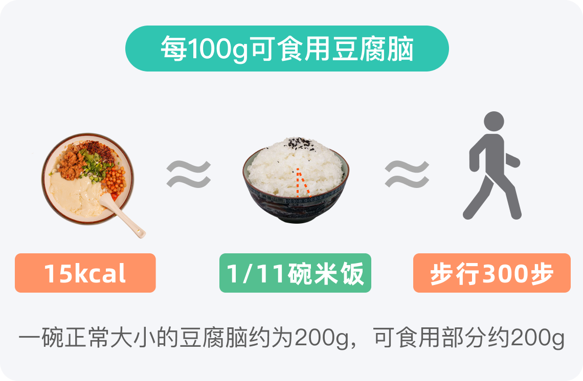 在营养学对食物热量的分类中,每100g可食用豆腐脑热量仅为15kcal,属于低热量食物。一碗正常大小的豆腐脑约200g,热量为30kcal,约等于1/6碗米饭。对于部分成年人一餐500-800kcal的热量需求而言,一碗豆腐脑所占比例较低。