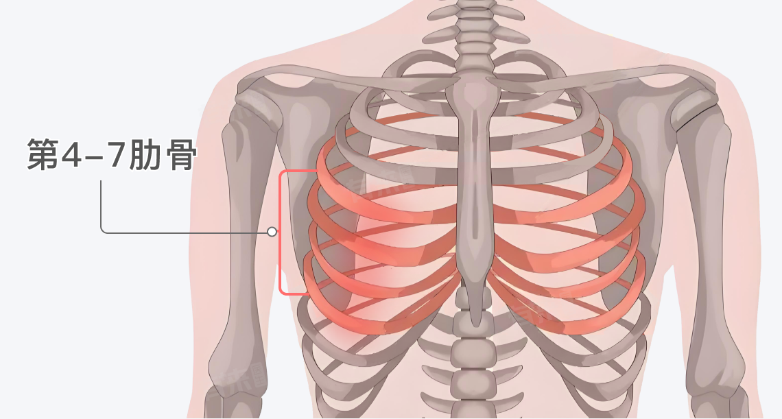- 受力情况:与第4肋骨相似,第5肋骨在遭受外力冲击时也容易发生骨折。此外,由于第5肋骨与腋前线相近,当身体受到侧面冲击时,也容易受到损伤。