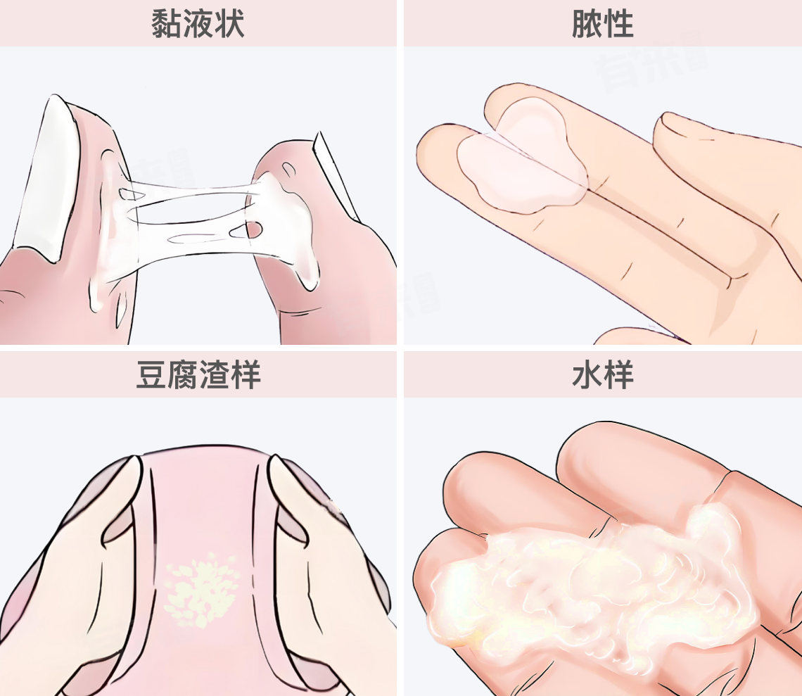 分泌物的性状也会有所不同。可能会变成黏液状、脓性、豆腐渣样或者水样。
