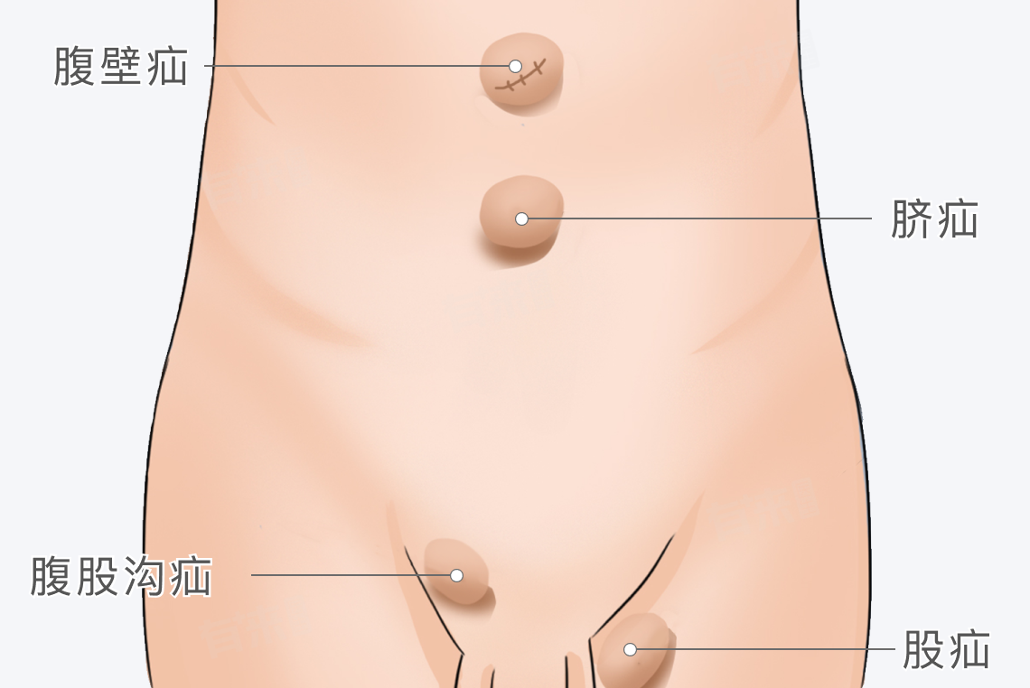 老人疝气通常表现为体表出现突出的肿块,起初肿块较小,在站立、咳嗽、用力排便等增加腹压动作时显现,平卧后可能回纳、缩小。随着病情进展,肿块渐大,伴有坠胀、疼痛感。根据疝气发生的位置,可将其分为股疝、腹股沟疝、腹壁疝、脐疝等。
