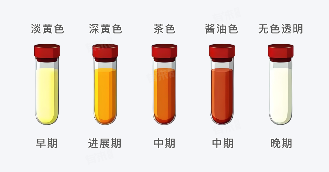 尿毒症患者的尿液颜色可能呈现多种状态,一般会出现淡黄色、深黄色、茶色或酱油色、无色透明等,这些颜色与肾脏功能受损、尿液浓缩、血尿以及尿量减少等因素有关,患者应密切关注自己的尿液颜色变化,并及时就医进行诊断和治疗。