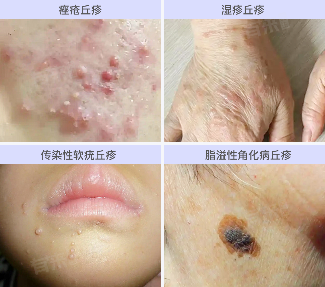 丘疹是皮肤病中常见的一种局限性隆起皮损,通常表现为皮肤表面的实质性局限性隆起,它们可能是圆形、类圆形或不规则形状,颜色可能呈现为红色、紫色、黄色或白色等,这取决于引发丘疹的病因。