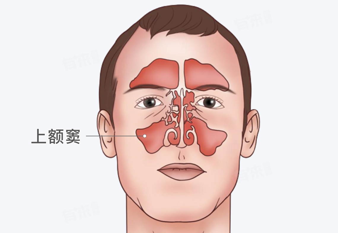 上颌窦是位于上颌骨体内的一对鼻旁窦,具体位置在鼻子旁边的脸颊区域,处于两侧脸颊下方、牙齿上方,形状像金字塔或三角锥体形。上颌窦还可能发生多种疾病,因此保护其健康对于维护整体健康至关重要。