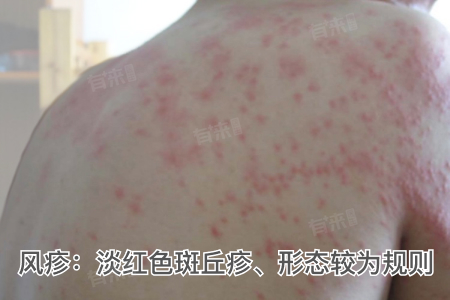 - 外观特征:风疹通常在发热1-2天后出疹,先从面颈部开始,迅速向下蔓延至躯干和四肢,皮疹为淡红色斑丘疹,直径约2-3毫米,形态较为规则,分布相对均匀,疹间皮肤正常,皮疹一般不会融合,消退后一般不留色素沉着,亦无脱屑现象。
