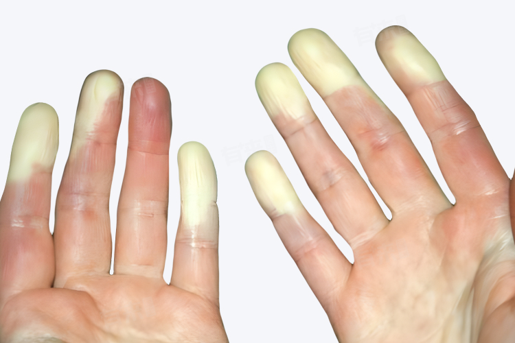 雷诺现象在系统性硬化症患者中较为常见,是多数患者的首发症状。患者在遇冷或情绪激动时,手指或脚趾的皮肤会先变白,随后变紫,最后转为潮红,雷诺现象可能会频繁发作,每次发作可持续数分钟至数小时不等。